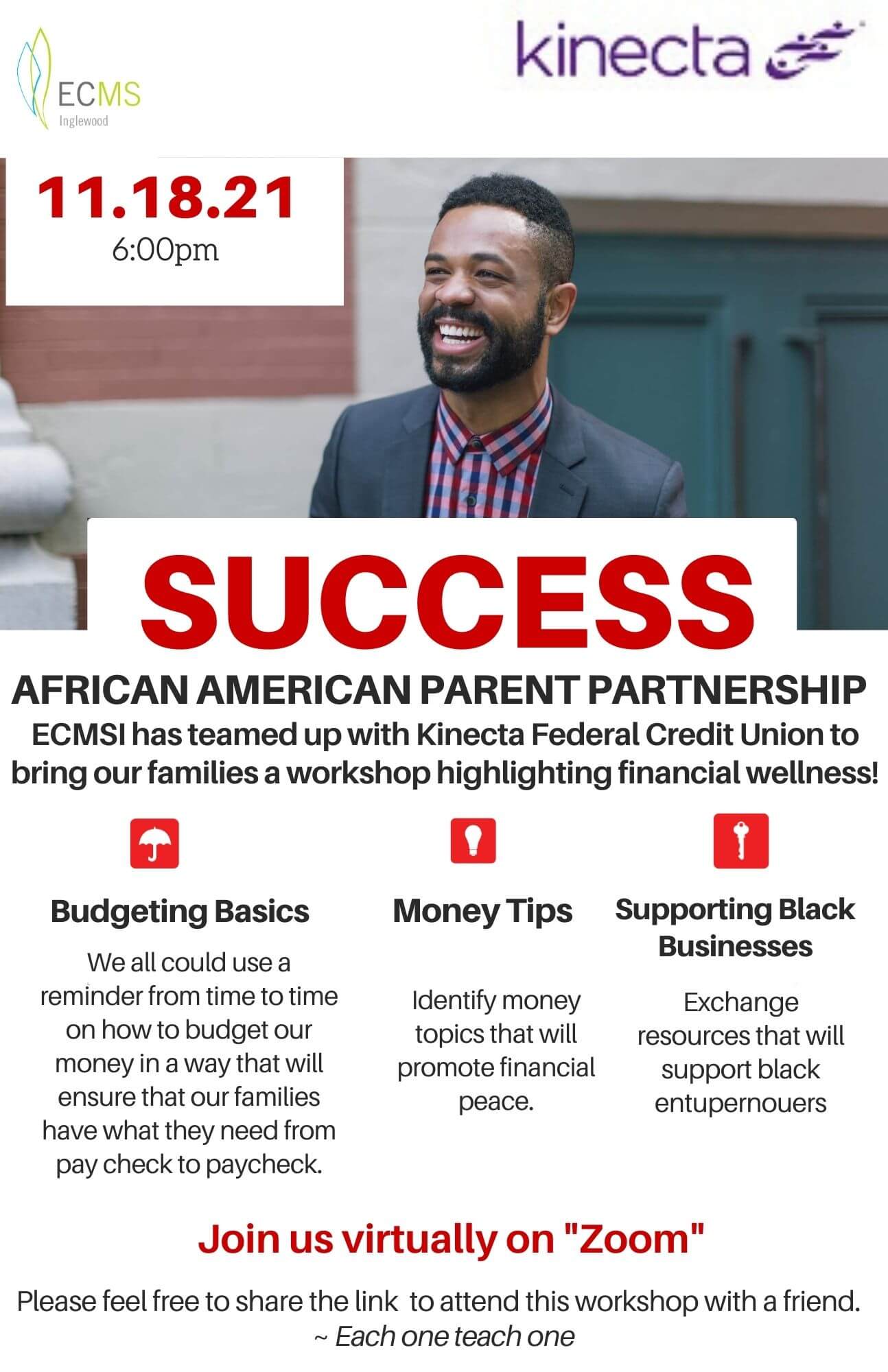 Join us virtually on November 18th at 6:00pm as representatives from Kinecta Federal Credit Union host a workshop highlighting financial wellness in the African American community. Click here for the link to join.
