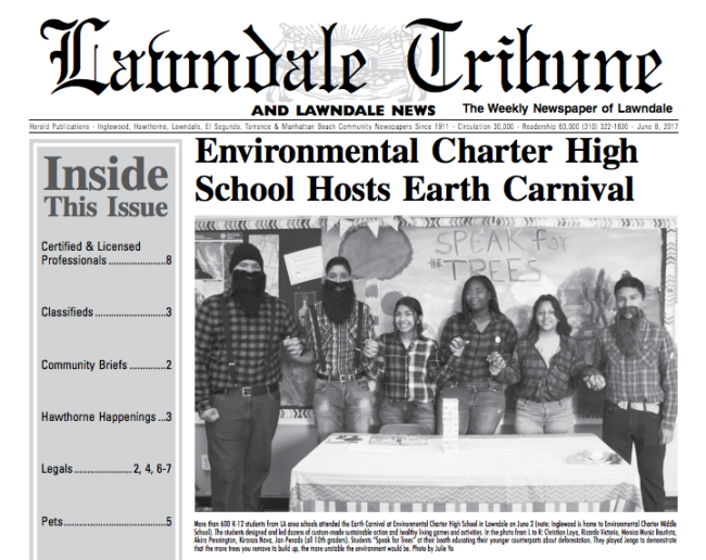 ECHS Earth Carnival is featured in our local Lawndale Tribune.