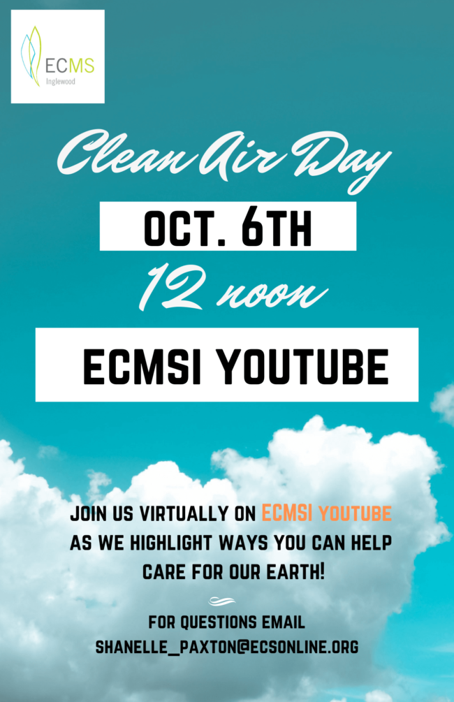 October 6th is “Clean Air Day!” Join us on ECMSI YouTube as we highlight ways we all can help care for our air. Please share with family and friends.