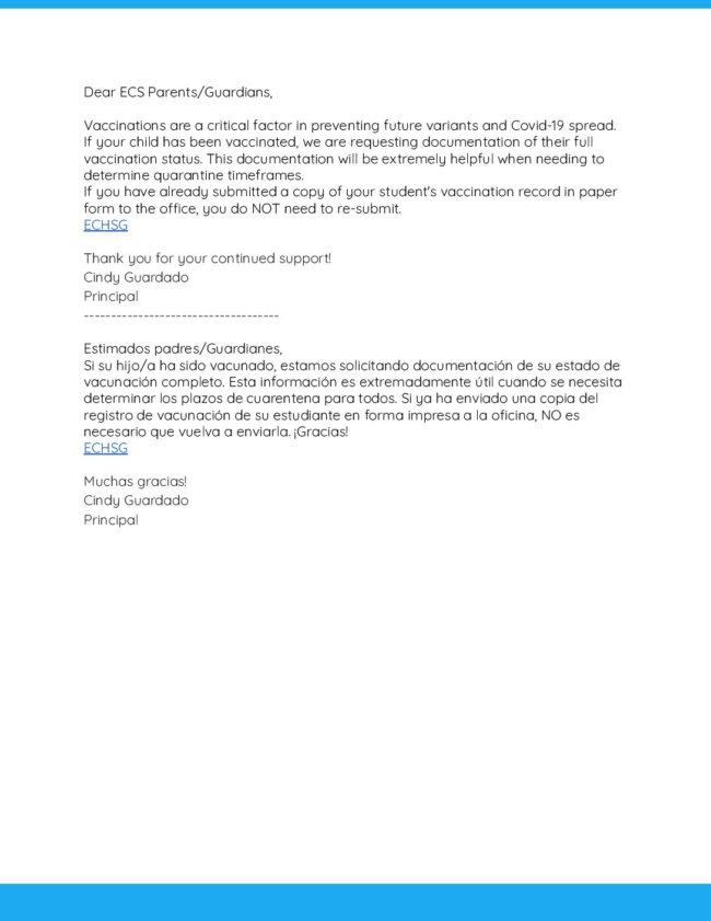 DetailsPlease click here to read this important message from the Principal, Dr. Guardado about vaccination records. To upload vaccination records, please click here.
