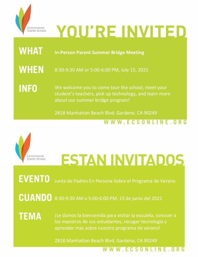 As the world begins to open up, we know that safety is still a priority for our families. With this in mind, this summer, ECMS Inglewood will be offering several opportunities for our students to participate in fun-filled, teacher led, summer programs, camps, and workshops! Many students have already registered, but there is still space…