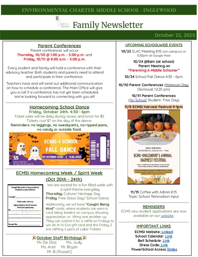 Environmental Charter Middle School – Inglewood (ECMS-I) is a free, public middle school in South Los Angeles that offers students a small, caring school environment supporting their transition from elementary school to a college preparatory high school.
