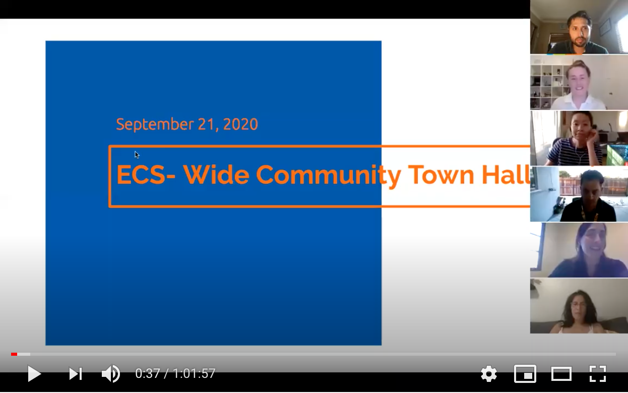 On September 21, 2020, at the Community-Wide Town Hall, ECS Directors talked about our organizational priorities for the 2020-2021 school year, answered questions and received feedback on our Learning Continuity and Attendance Plan.